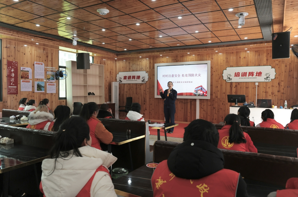 在金兴村活动现场,城步消防大队消防员为社工讲解了火场如何逃生、灭火器如何使用等消防安全知识,并组织社工现场进行防火演练。