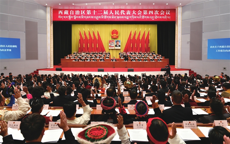 自治区十二届人大四次会议闭幕会现场。西藏日报记者 次仁平措 摄