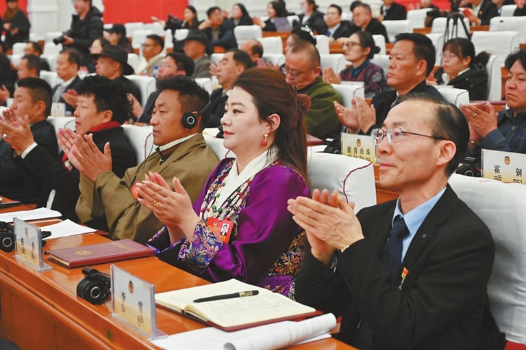 2月3日下午,自治区十二届人大四次会议闭幕。会场内,掌声承载着对“十四五”成就的喜悦和对“十五五”开局的期待;会场外,汉、藏、回、珞巴、门巴等民族代表手拉手合影,定格各民族同心聚力的瞬间,代表们的调研笔记已转化为具体工作清单,彰显了努力建设团结富裕文明和谐美丽的社会主义现代化新西藏的坚定决心。