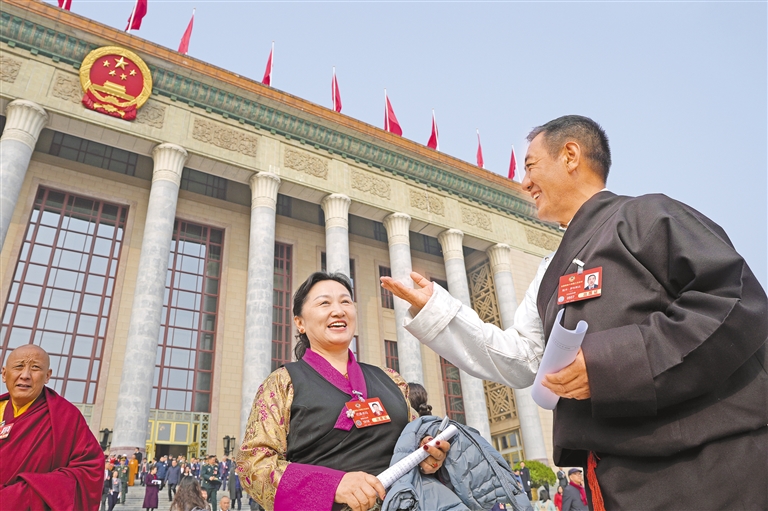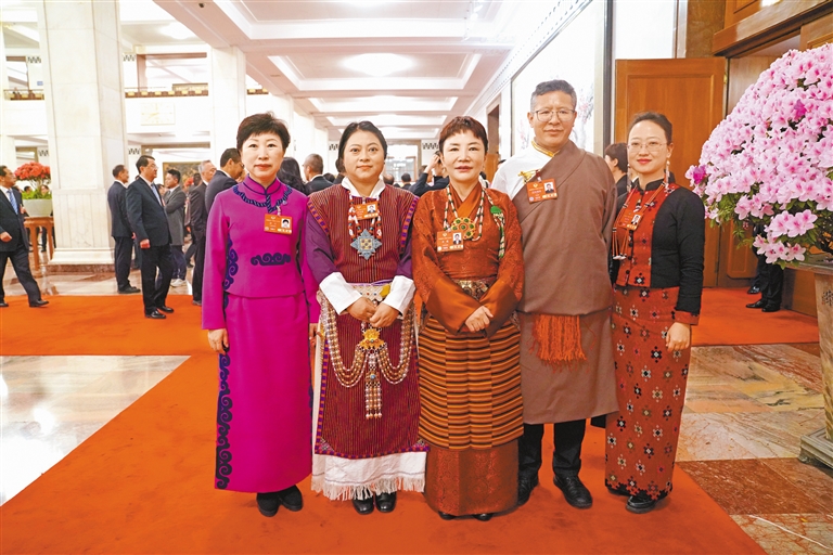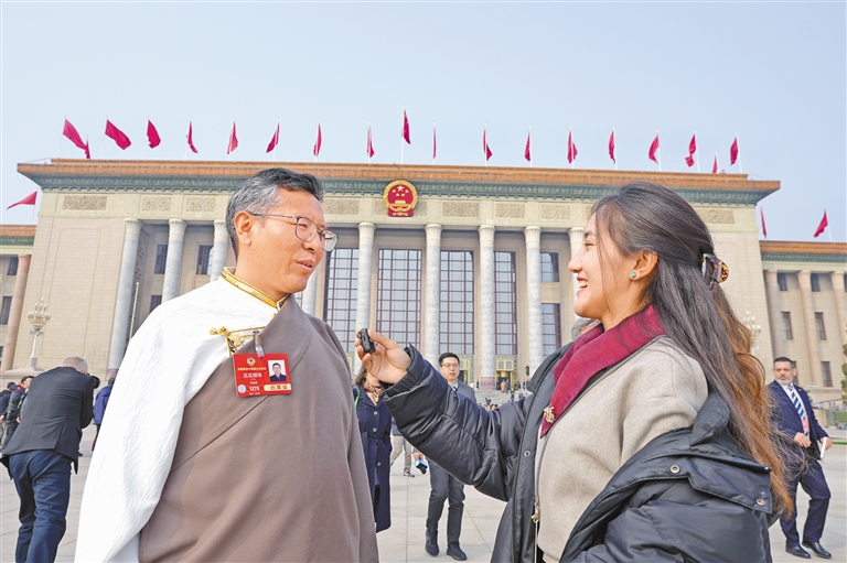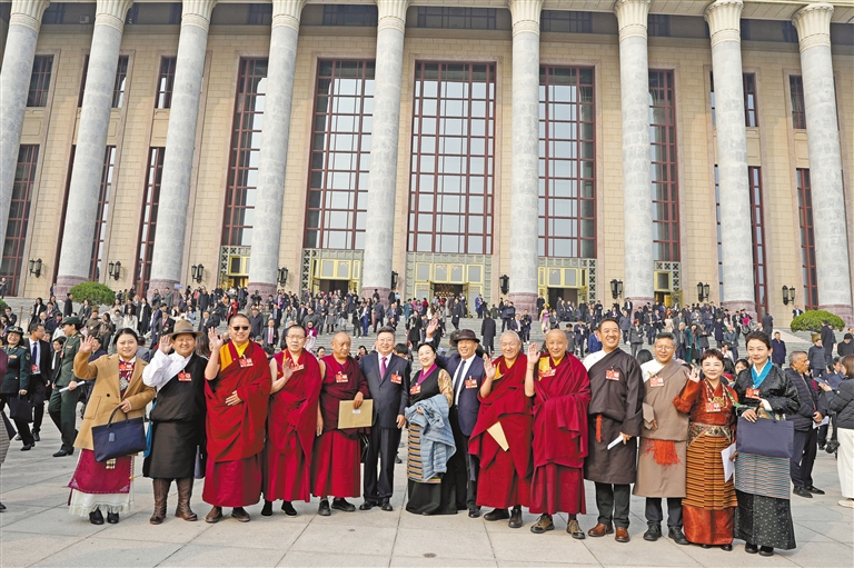 图为住藏全国政协委员等参会人员在人民大会堂前合影留念。 记者 旦增平措 次旦央吉 摄