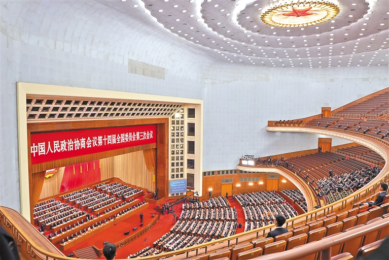 图为3月10日上午,中国人民政治协商会议第十四届全国委员会第三次会议在北京人民大会堂闭幕。 记者 旦增平措 次旦央吉 摄
