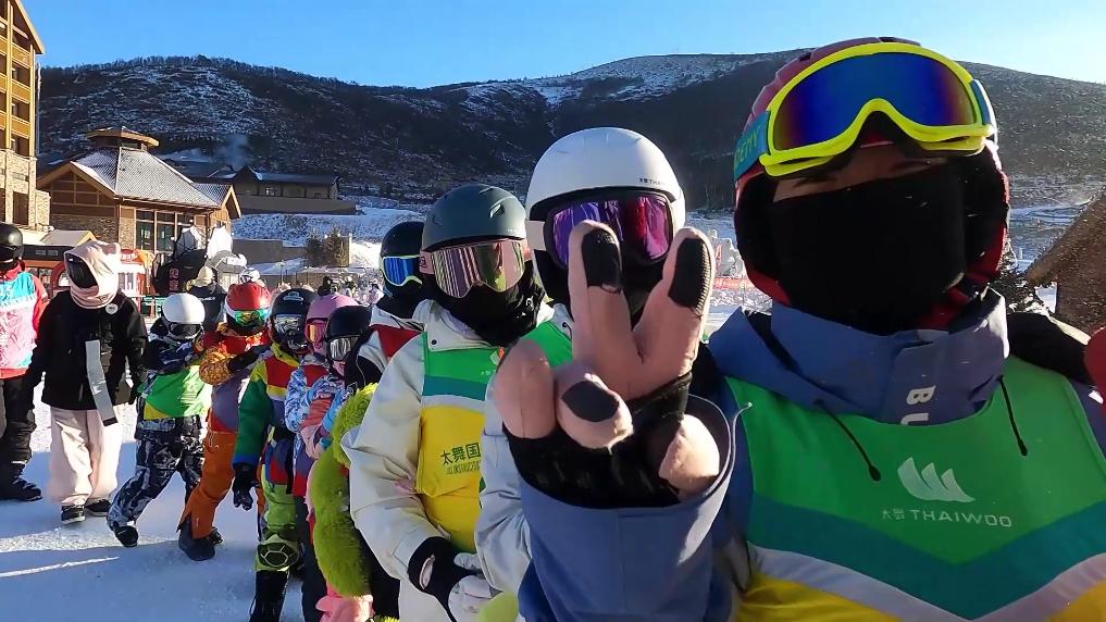 在河北张家口太舞滑雪小镇,来自全国各地的学生们在雪道上练习滑雪。该滑雪场打造青少年滑雪冬令营,配备专属雪道和教练团队,推出的“滑雪+研学”套餐广受欢迎。