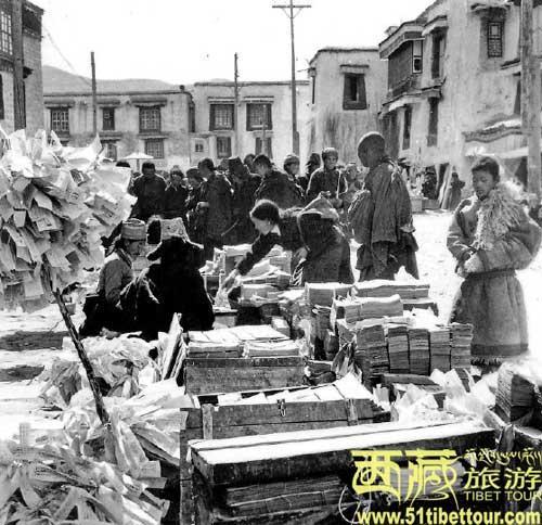 当时的八廓街及周边,已经形成了与现在相似的格局。环绕八廓街,是大的商铺和摆摊的商人。开店铺的,多是尼泊尔人、印度人和少量资本雄厚的大藏商;摆摊的,多是康巴来的小商人,卖一些生活用品、布料、装饰品等;而东北方向的冲赛康多是卖农副产品;东南方向的河林坝,是清真寺所在地,戴白帽的回族人在这里做着自己的手工业,做一些皮毛的初加工、编织地毯等,他们并不常到八廓街来。