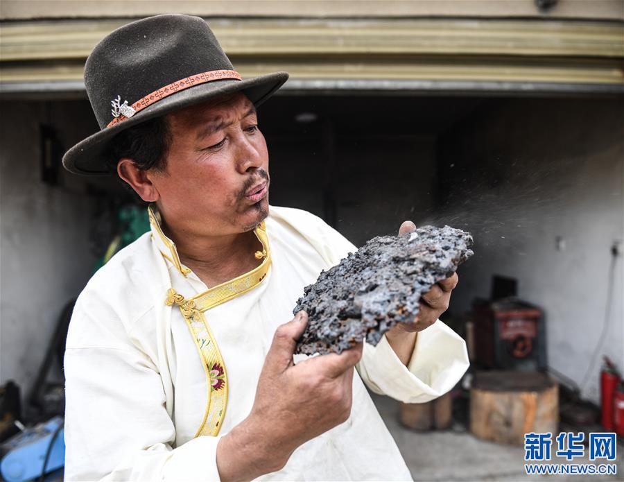 牛琼查看提炼之后的易贡当地铁矿石(5月30日摄)。新华社记者 晋美多吉 摄