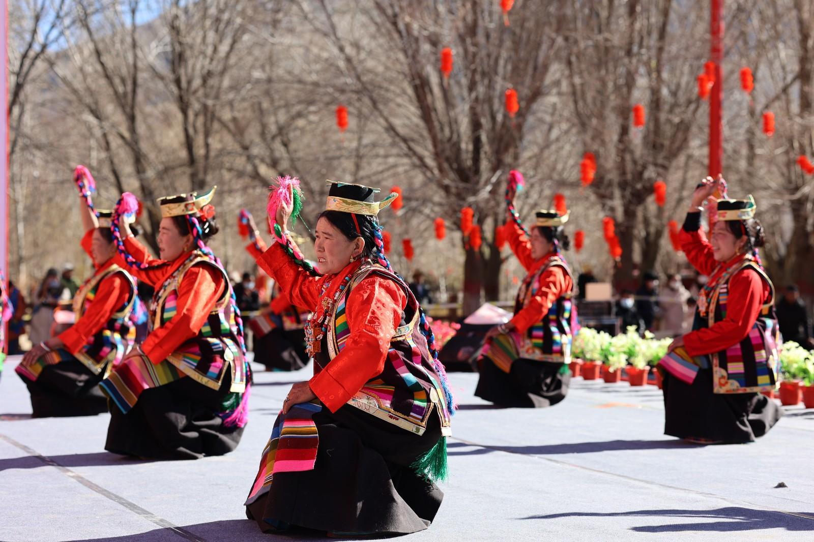 近年来,山南市坚持“保护为主、抢救第一、合理利用、传承发展”的方针,加强组织领导,狠抓科学规划,强化保护措施,非物质文化遗产保护工作取得了显著成绩。 图为山南市琼结县金珠村县级非遗歌舞《百·甲江》。记者 巴桑旺姆 摄