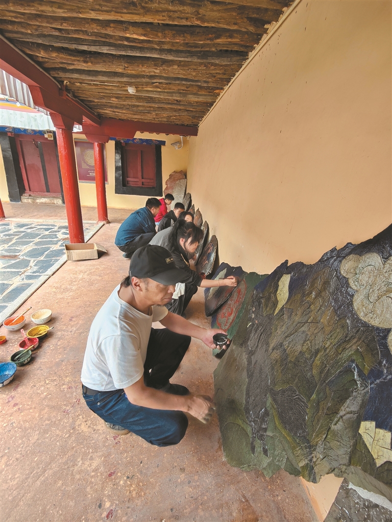 从讲台到画板,从教室到古建现场,加措以指尖勾勒出藏式彩绘的千年传承脉络,以20年坚守在职业教育领域中培育文化、传承薪火。他如同藏式建筑上的“斗拱”,虽不惹眼,却稳稳托举着藏式彩绘技艺传承和文化赓续,以及年轻人对传统手艺的渴望。