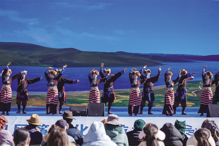 活动在充满民族风情的歌舞表演《吉祥》中开启,演员们身着绚丽的藏族服饰,将传统民族文化与现代艺术巧妙融合,灵动的舞姿与嘹亮的歌声赢得现场阵阵掌声;歌伴舞《感谢您·“图吉切”》则以深情旋律,传递出各族群众对党和国家的感恩之情,展现出西藏群众对幸福生活的珍视与对美好未来的向往。活动现场同步设置非遗产品展示区,各类文创产品与特色手工艺品琳琅满目,吸引了大批市民驻足品鉴、选购。