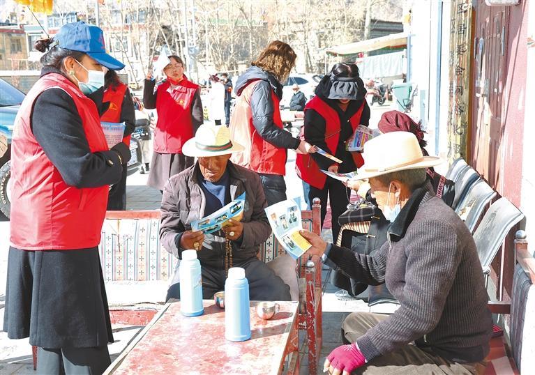 图为山南市中级人民法院女法官、女干警深入乃东区罗布林卡社区开展法治宣传教育活动。记者 段敏 摄