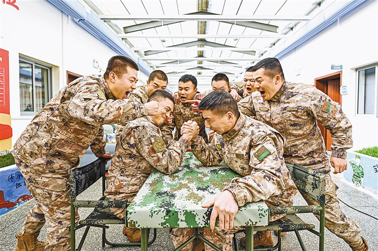 昆木加哨所战士开展“掰手腕”比赛。刘煜钦 摄