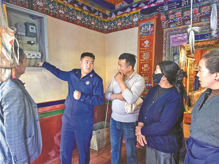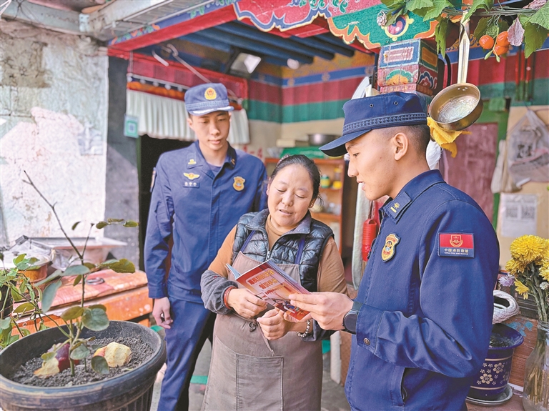 拉萨市消防救援支队宣传员深入老城区“敲门入户”为居民普及家庭消防安全常识。