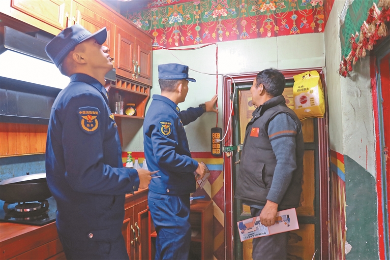 图为康马县消防救援大队宣传员深入农牧民家中排查火灾隐患。次仁普赤 摄