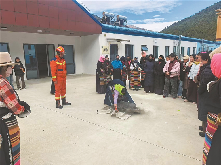 图为亚东县消防救援大队消防员深入辖区搬迁点开展消防安全宣传培训活动。龙珍 摄