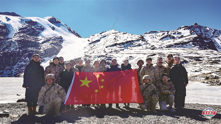 “我站立的地方是中国!中国!中国!”在海拔5000米的执勤点位上,14名清华师生与边防官兵并肩而立,高举国旗庄严宣誓。近日,清华大学“青春界碑 国土边防”实践分队,跨越数千里奔赴西藏军区某部边防点位,开展国防教育实践活动。