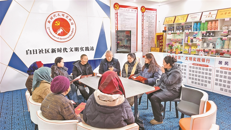 图为志愿者向群众宣讲党的惠民政策。记者 丹增平措 摄