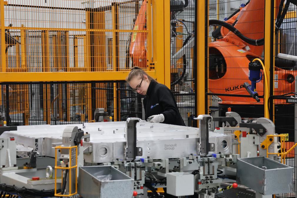 2月23日,在法国吕茨,中国敏实集团与法国雷诺集团成立的合资公司的员工在电池盒产线上工作。新华社记者张百慧摄