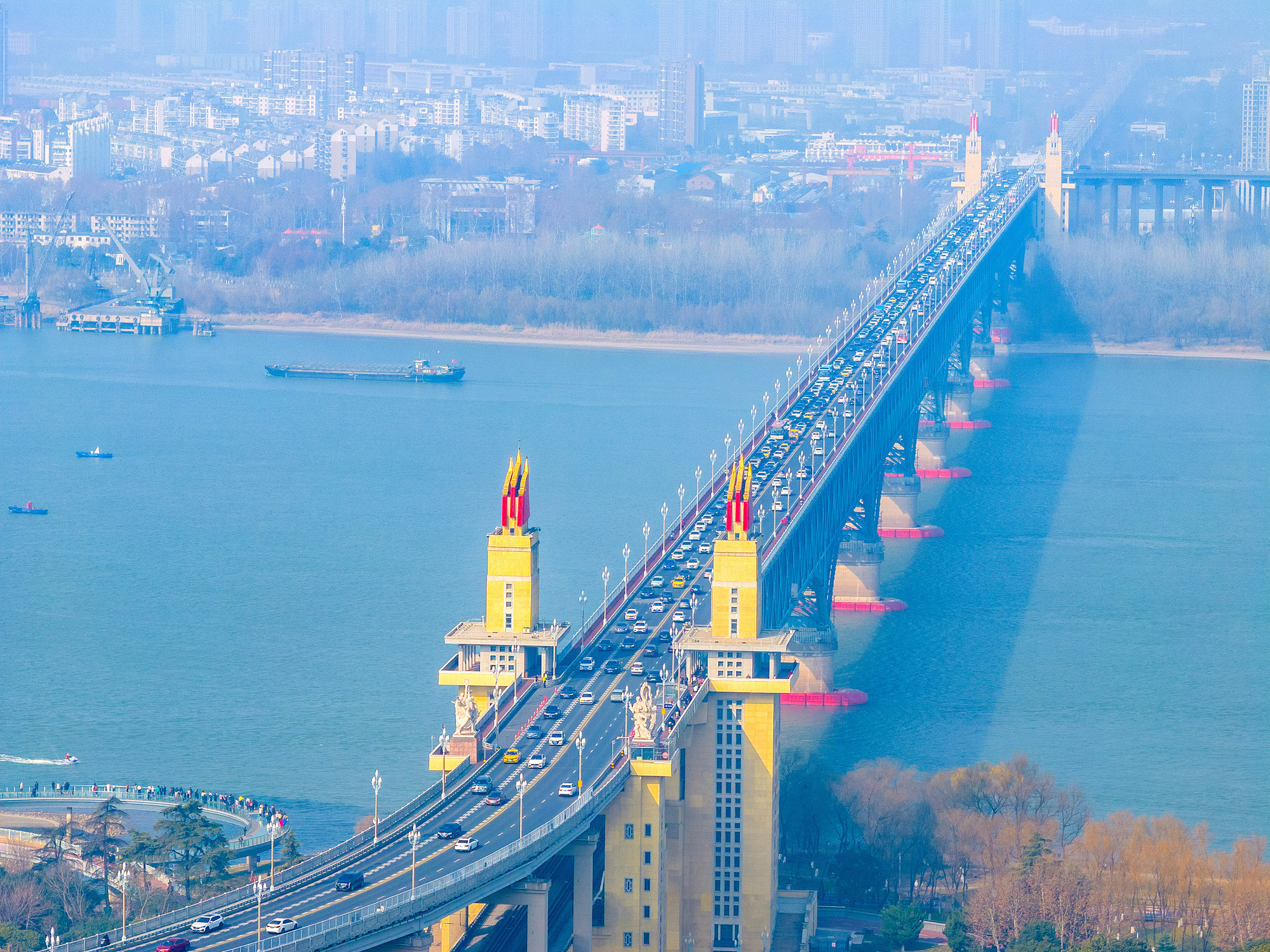 南京长江大桥车水马龙