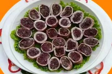 2.血肠:别具特色的藏式美食久玛,即“血肠”。做法是将刚宰杀的牛、羊的血加入米饭、糌粑、盐、野葱等佐料,搅拌均匀后再灌入洗干净的牛、羊肠子里,放进锅里用水蒸熟即可食用。