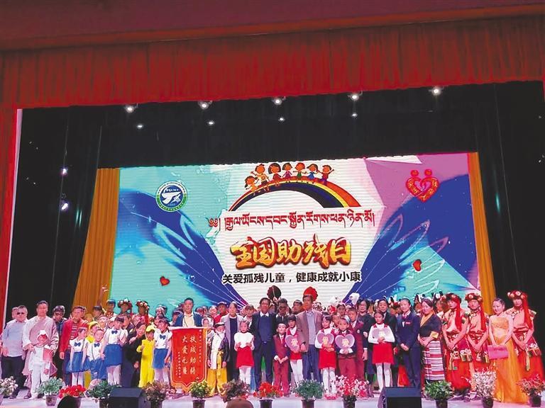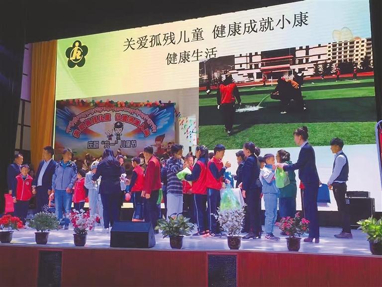 图为在全国助残日,全校师生开展“关爱孤残儿童,健康成就小康”活动。
