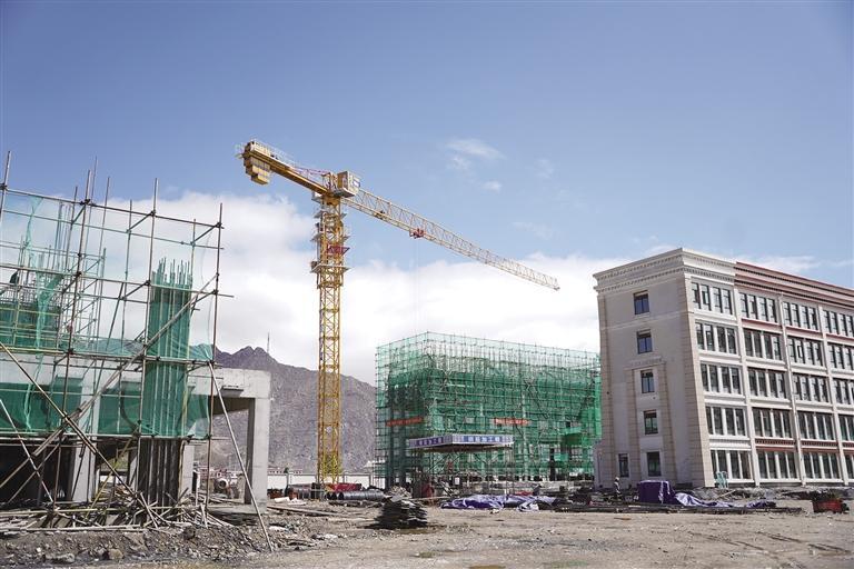 16日,记者在施工现场看到,拉萨市实验小学教育城分校北面,很大一块空地被挡板围了起来,大型起吊机正在挡板内来回运转。其中,有三栋楼已拔地而起,从外面看主体已经竣工。