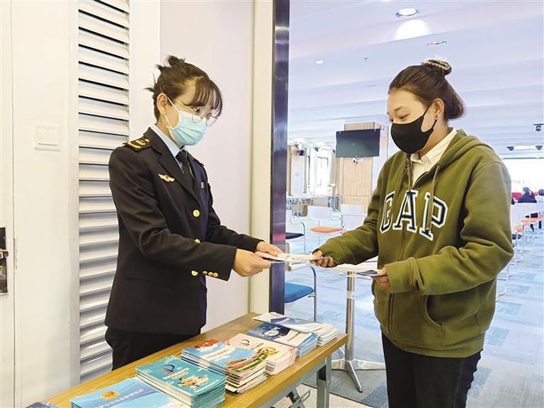 拉萨市市场监管部门工作人员向企业代表发放知识产权宣传资料。记者 央金卓玛 摄