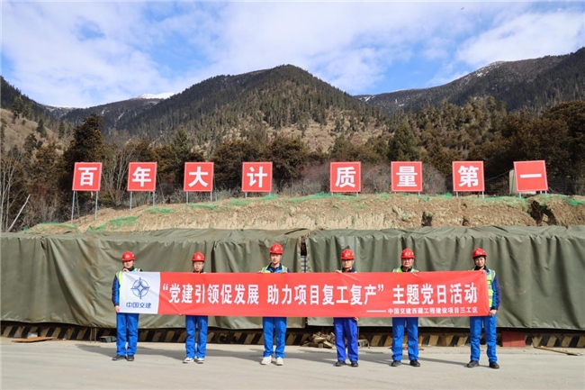 近日,中国交建西藏工程建设项目三工区党支部举办“党建引领促发展,助力项目复工复产”主题党日活动,充分发挥党建引领作用和党员先锋模范作用,推动项目复工复产工作扎实开展。