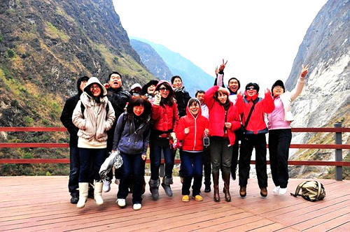 我们最初的团队在虎跳峡观景台的合影,大家开始都表现的很HI