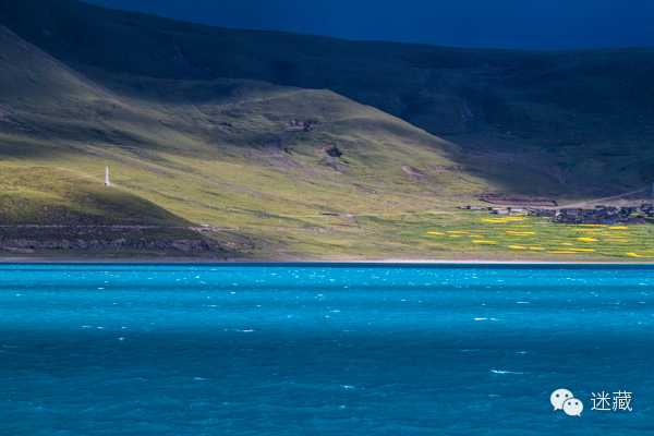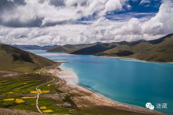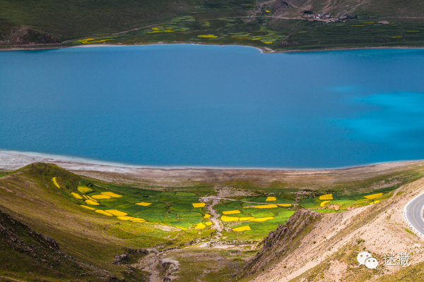 只有夏天,羊湖岸边才会有黄色的油菜花出现。