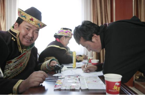 此次培训人数33人,平均年龄为30岁,分别来自米林县卧龙镇麦村、鲁朗镇东巴村和米林县卧龙镇甲竹村,均是零基础学习绘画,在老师的指导和自身的努力下已经掌握基本绘画技能,甚至能创作出新的绘画样式。藏族人本来对艺术就有天分,到场的农牧民都表示非常喜欢此次培训内容,“不仅提供材料、请老师来教我们画画,还提供机会增加我们的收入,我们非常高兴。”