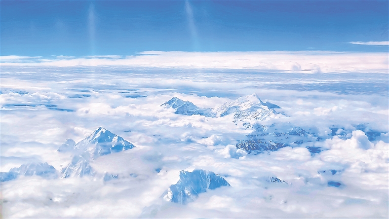 空中俯瞰南迦巴瓦峰。南迦巴瓦峰位于林芝市雅鲁藏布江大峡谷内,自然资源丰富,被誉为“绿色的宝库”。 经济日报记者 高兴贵 摄