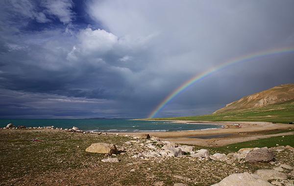 风光绝美的色林错,是西藏第一大湖。湖水、草甸、沙石滩、蓝天、白云融为一体;时而可见藏羚羊等野生动物在湖畔草场上觅食,展现出一幅生机勃勃的高原夏日美景。新华社记者 刘东君 摄