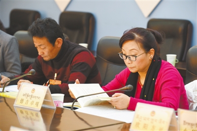 图为人大那曲代表团代表们认真审议政府工作报告。 记者 王晓莉 张宇 摄