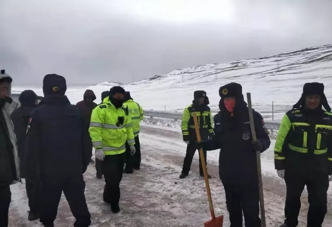 在唐古拉山口,因为海拔高,气温低,经常会出现这样的天气。由于国道109线天下第一道班至唐古拉段是保通任务最重的路段,安多县交警大队也针对这一特殊路段,进行了特殊警力安排,特殊天气实行24小时巡逻,发现险情,立即进行处理,以最快的速度,确保道路安全畅通。