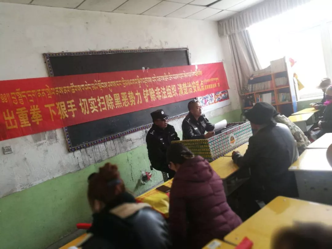 近日,麦地卡乡派出所所长珠次仁、教导员边久组织民警会同乡政府人员对辖区进行了一次全覆盖性的扫黑除恶大摸排、大学习、大讨论、大宣传活动。此次活动,麦地卡乡派出所同乡政府共成立4个宣讲小组,以走村入户的形式为村民宣传扫黑除恶的重大意义、扫黑除恶相关政策、扫黑除恶举报奖励机制和扫黑除恶打击重点,并发放宣传手册、知晓卡。