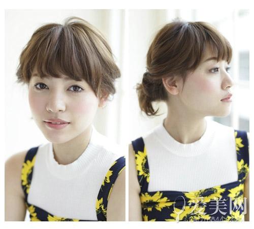 萌萌哒的齐刘海搭配侧边的扭转扎发显清爽甜美,更具时尚个性。