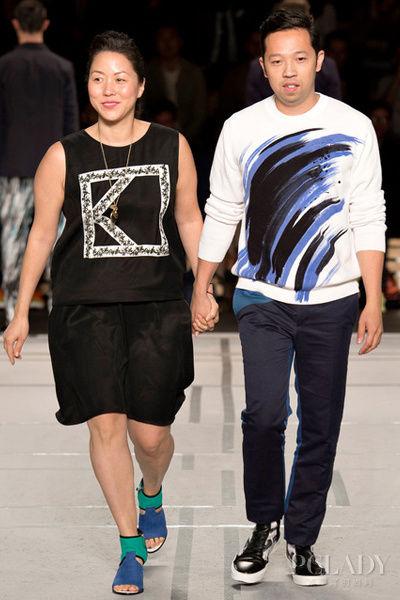 1.Kenzo的设计师温贝托·梁 (Humberto Leon)与卡罗尔·李 (Carol Lim)自2011年7月接管Kenzo一来,为品牌带来了很大的变化,从当年的虎头开始就在时尚圈刮起了一股热潮,然后再到独眼,再到2014春夏的小鲨鱼,这种符号性的品牌特色也让Kenzo 更加年轻化。