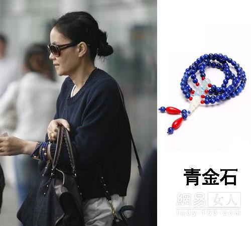 王菲这条手链的出镜率可是很高的。这条手钏的材质属于青金石,是佛教七宝之一。青金石越蓝,颜色越浓,越均匀,则越好。如果颜色中交织有白石线或白斑,就会降低颜色的浓度、纯正度和均匀度,品质就降低了。