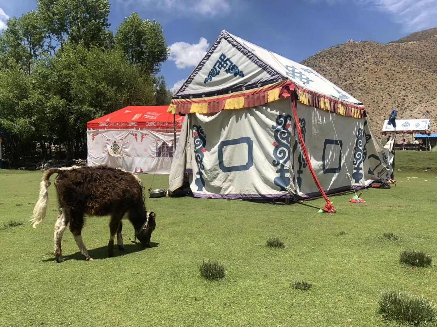 9月,丰收的季节,驾车驶上拉贡机场高速,风光无限。晴空下,路旁的树木郁郁葱葱。稍远些,田里偶有村民忙着收割成熟的青稞,有的已收割完毕,金黄的青稞垛整齐地堆放着,煞是好看。远处则是青山,与蓝天白云构成绝美的画卷。机场高速沿线的达东村是不少人周末休闲娱乐的向往之地,周边山体依然身披绿装,庄稼地里飘荡着刚刚秋收后泥土的清香。选一个天气晴朗的日子,约上小伙伴们来这里泡泡温泉,看看景色,享受美妙的闲暇时光。亦或者租一顶帐篷,在里面欢歌起舞,演绎藏式生活的和谐与惬意。据了解,这里的帐篷有大中小三类,价格根据大小的不同在300至500元之间。
