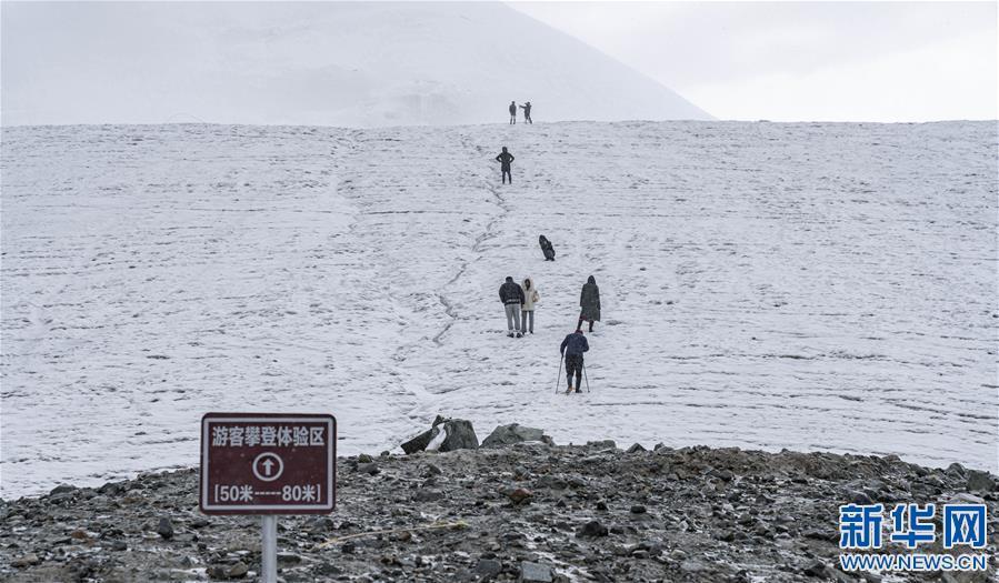 在廓琼岗日冰川公园内,游客正在体验攀冰乐趣(8月30日摄)。新华社记者 孙非 摄