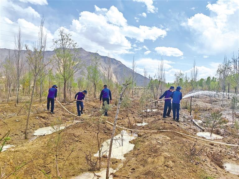 近日,西藏森林消防总队训练大队组织消防指战员,前往拉萨市曲水县才纳乡植树示范林区,开展示范林区绿植的浇灌工作,确保种植的苗木健康成长,绿化成果不受损失。据悉,今年春季,该大队积极响应自治区“提质增绿行动”会议精神,在植树示范林区种植新树苗3000余株,为拉萨再添新绿。