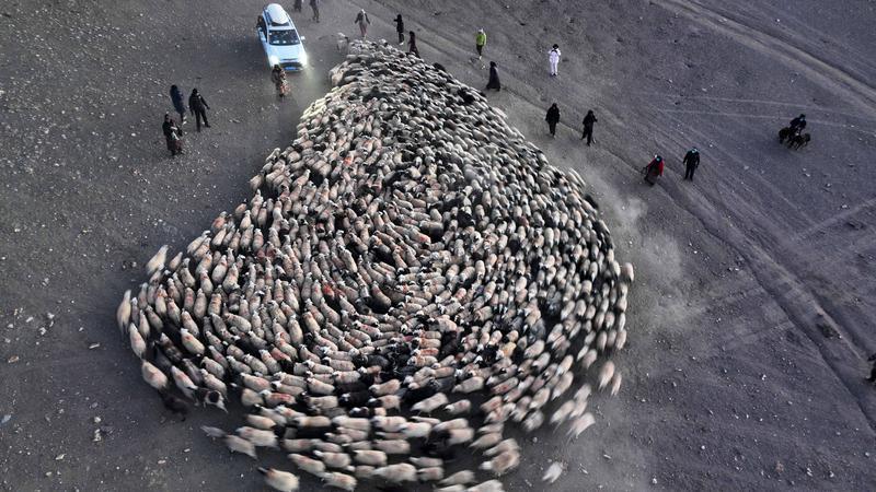 “每年赶羊前10天,村里家家户户都会开始准备炉灰,炉灰是用来撒在冰面上防止羊群摔倒。”旺堆说。虽然提前撒好了防止羊群打滑的炉灰,但还是会有频繁打滑摔跟头的羊,此时牧羊人就会扶它们起来,或背或抱,把它们送到目的地。