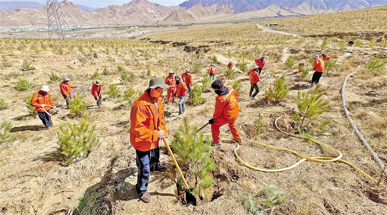 图为4月3日,拉萨市堆龙德庆区德阳村的植树造林现场。记者 白玛泽旺 摄