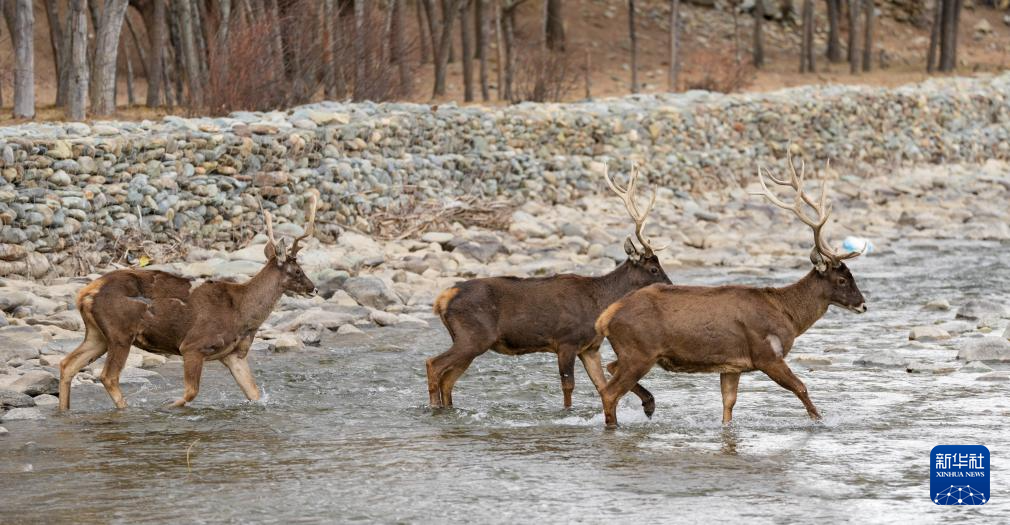 这是3月15日在西藏山南市乃东区结巴村拍摄的白唇鹿。新华社记者 晋美多吉 摄