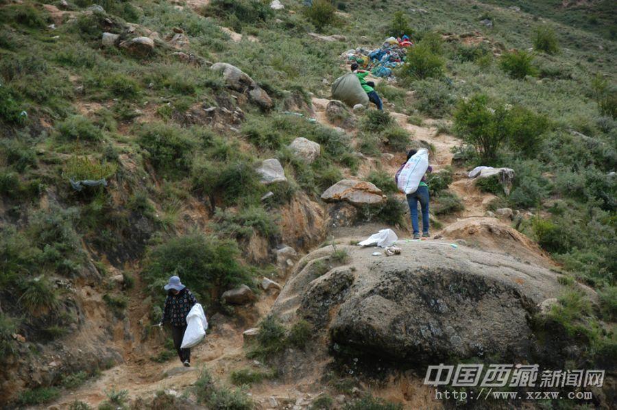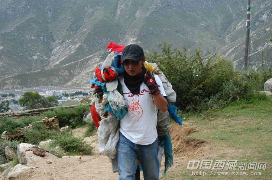 在西藏,经幡又称(风马旗),是人们为了祈愿、报答山神和上苍神灵,将经幡挂在具有灵气的神山、垭口、河流等地方。常见的经幡多由布制成,也有用麻纱、丝绸等天然纤维材料制成。现今市面上出现了廉价的由人造纤维制成的“现代经幡”,这种“现代经幡”在大自然中难以被分解,对生态环境构成了巨大的危害。 中秋节前夕,拉萨民间组织"廓瓦"和“直贡学子之家”爱心团队来到了位于拉萨娘热沟的帕崩岗,和一些同样热衷于环保事业的志愿者、爱心人士,共计65人,对山上的部分废旧经幡进行了清理。