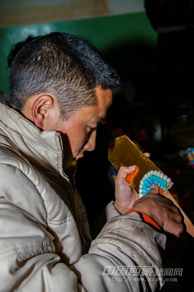 过完后藏新年之后,来自日喀则仁布县普松乡的的阿旺桑布和几位同乡,就带着铺盖卷和糌粑来到拉萨制作“仔卓”销售。仔卓,就是酥油雕花,其制作过程非常讲究。它是将酥油染色之后,再制作成各种吉祥图案。 他们面前的一个水盆和一块木板就是他们的工作台,水盆里是冰冷的水,而木板上则是一坨坨彩色酥油,10多种颜色。他们每次揪酥油坯料前都要先在冷水中浸一下——因为如果手温高了,就会影响酥油的硬度,甚至使酥油融化。唯有如此,他们的双手才能与酥油亲密接触,以赤诚之心和灵巧的手指与酥油对话,才能将极易融化的酥油塑成一个个惟妙惟肖的花朵、草地、动物等等。 当阿旺桑布用竹签将酥油花板上的“猴子”、“兔子”、“鸟儿”的毛羽勾勒点画出来后,一个名叫“吞巴卑希”(“四和合图”,中心图案为:大象、猴子、兔子、鸟)的酥油花板就展现出来,其工巧,其滋润,其艳丽,其质感,让人赞叹。 阿旺桑布他们的后藏新年已经提前过完了,在拉萨热闹的新年气氛中,他们将安静地离开,回家。图/文:卢明文
