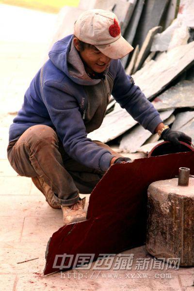在西藏,堆成方形、尖锥形或堆成石墙的玛尼石刻,给很多人留下了很深的印象。朝圣路上,每隔一段就有一堆玛尼石,朝圣者经过一段艰苦的跋涉后,玛尼石堆给朝圣者提供了休息的理由。 巨大的玛尼石需求量,造就了玛尼石刻艺人和艺术。 作为一名玛尼石刻艺人,1995年,在建造药王山“丹珠尔”石经塔时,平措扎巴放下了手中的唐卡画笔,加入了《丹珠尔》塔石刻工作,从此他的职业上由唐卡绘画转到了石板上刻经刻佛像的工作。 已经从事玛尼石刻15年平措扎巴说,虽然他们以此为生,但每刻一块玛尼石,他们也会按照朝佛转经人的要求,虔诚地向神祈祷,因为这是大地的祈愿。