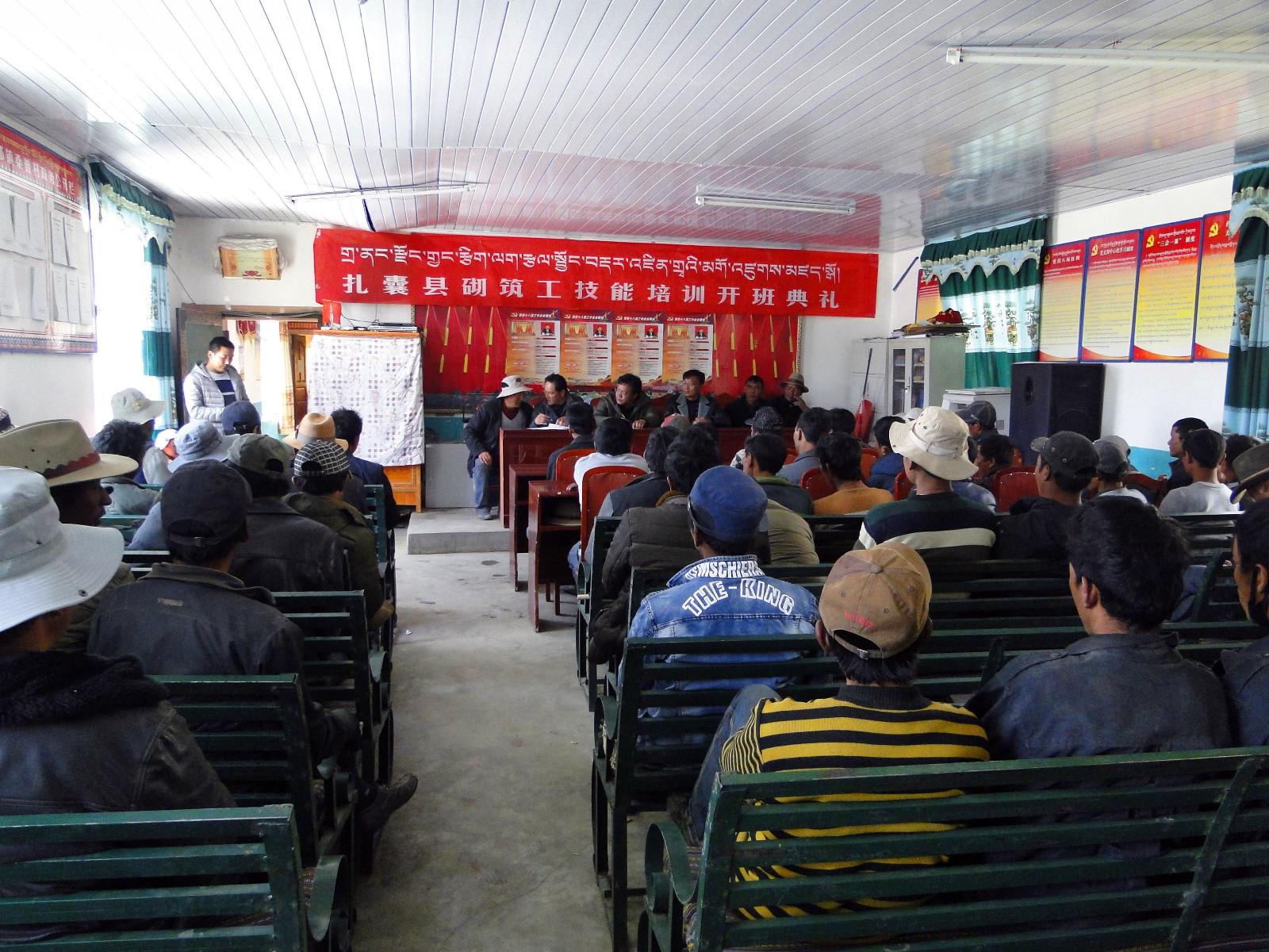 初春的上午,阳光洒满扎囊县桑普村。村民们走过希望的田野,陆续赶往村委会大院参加技能培训。