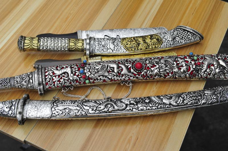 来自云南大理鹤庆县河头村的高建文在拉萨已经打拼了21年,在他从业的这些年中,他做过各种金银铜器,也了解加工技艺。不过,他最拿手的还是制作藏刀。高建文做的藏刀因为用料实在,做工精巧,价格便宜,得到不少藏族同胞的认可。