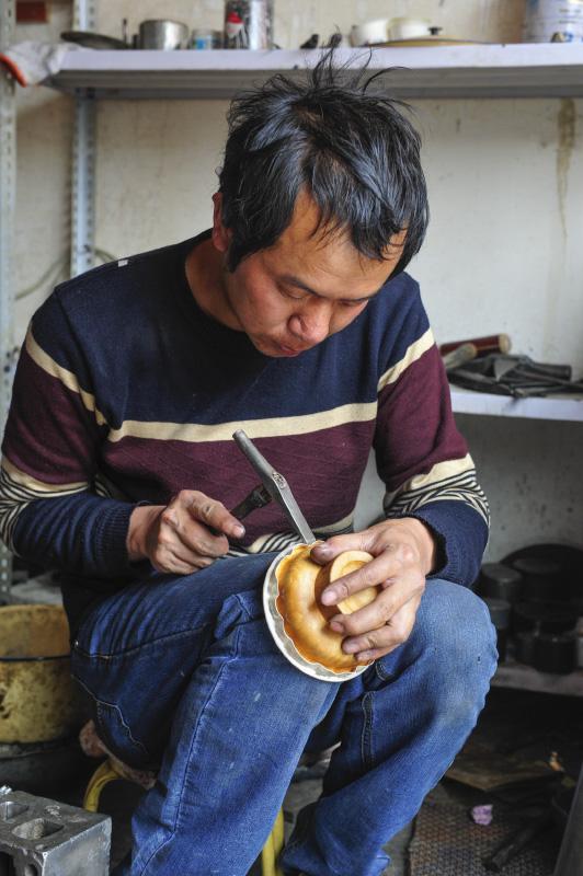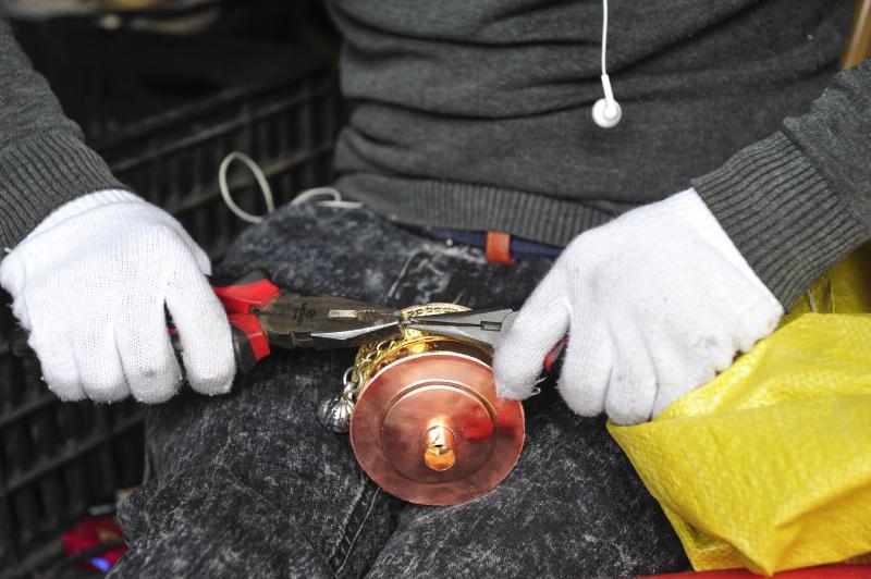 拉萨金银加工市场的300多家商铺里,每一家都有着各自擅长和主营的产品。走进这里的三栋四排,几家的男人都在埋头做着自己的工作,有主做藏刀的,有主做转经筒的,还有专门为木碗包银的,每家的技艺都不相同。“灾荒三年饿不死手艺人”,这是鹤庆白族金银工匠们的生活信条,也是他们的自信之所在。