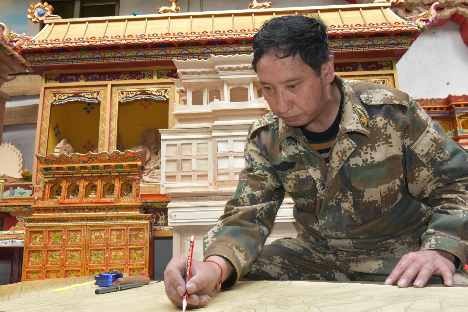 西藏传统的民族手工艺是藏民族千百年来在长期的生产生活中产生的一门独具魅力的艺术,它集中体现了藏民族的智慧和艺术气质。当你步入藏家楼房里时,就会被一件件雕花镂卉、富丽堂皇的藏式家具深深地吸引住。那些式样布局合理,图案千姿百态,色彩鲜艳明快的藏桌藏柜,以及雕花的门楼窗梁,都洋溢着幸福、吉祥、热烈的气氛。