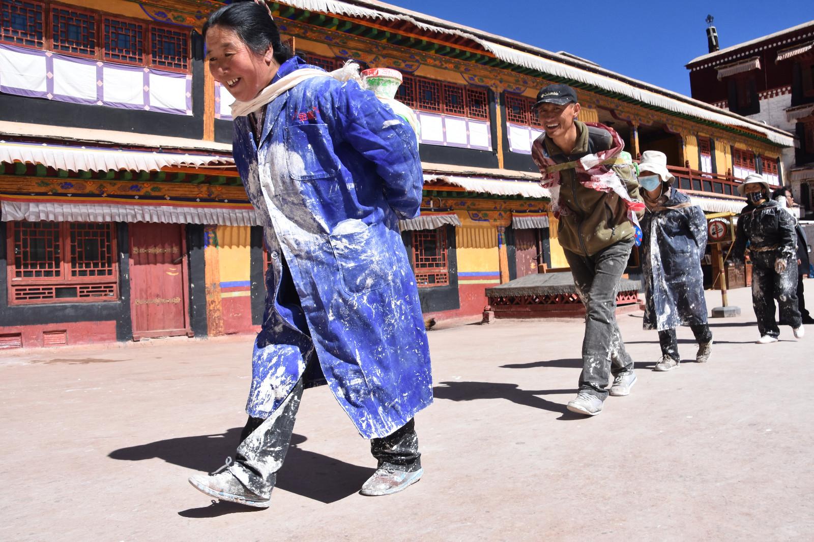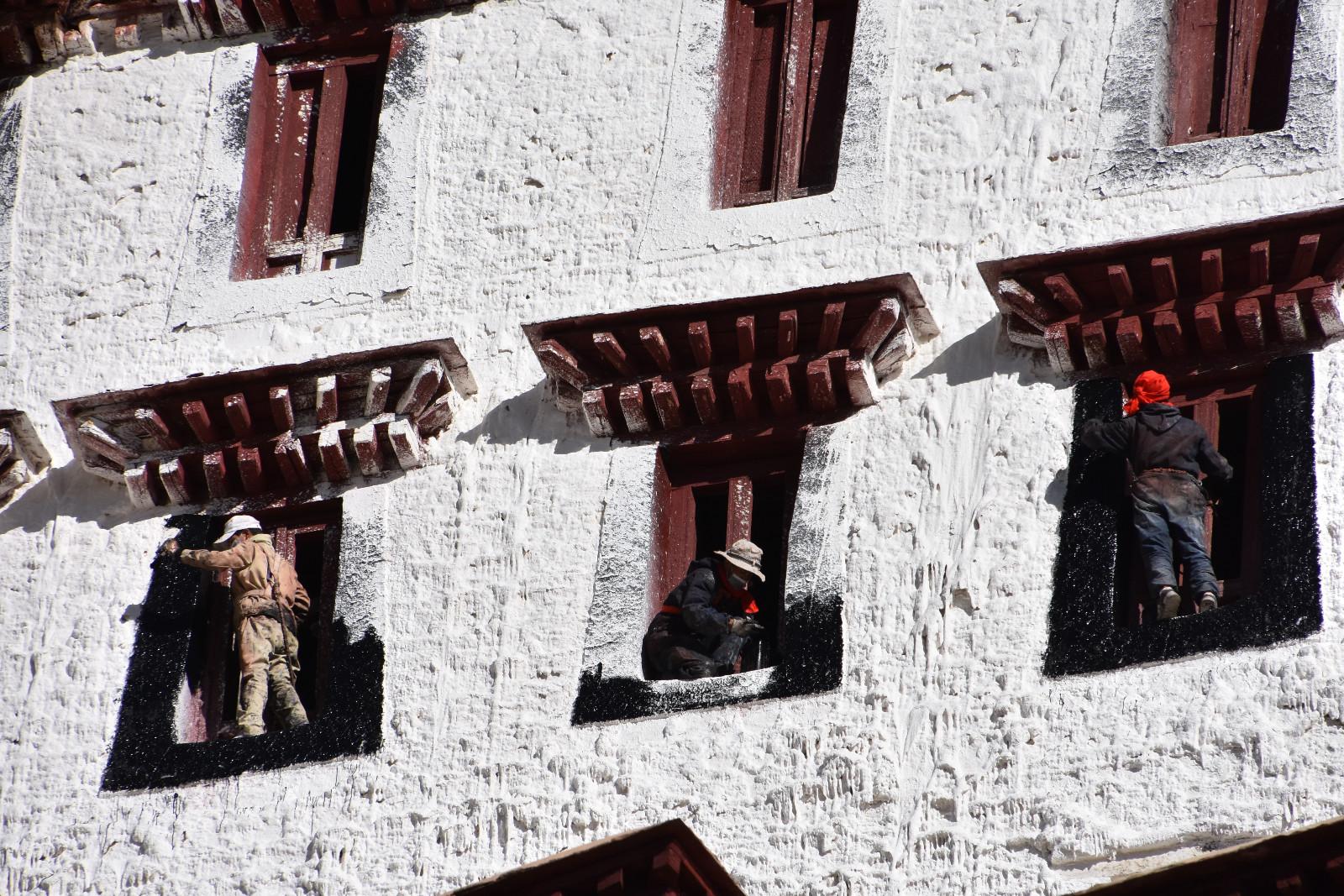 每年藏历9月初六开始,布达拉宫迎来一年一度的“换装季”。布达拉宫僧人和管理处工作人员、信教群众等组成的几百名工作人员对宫墙、白塔、窗框等进行整体粉刷。10多天的粉刷活动结束之后,布达拉宫这座世界非遗古建筑将焕然一新。